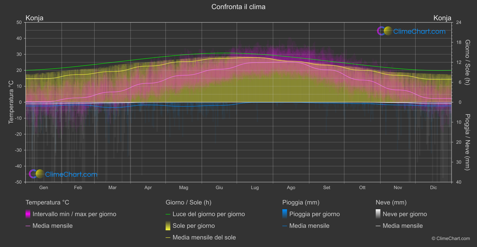 Grafico di Confronto Climatico di Konja, Turchia vs città del Messico, Messico