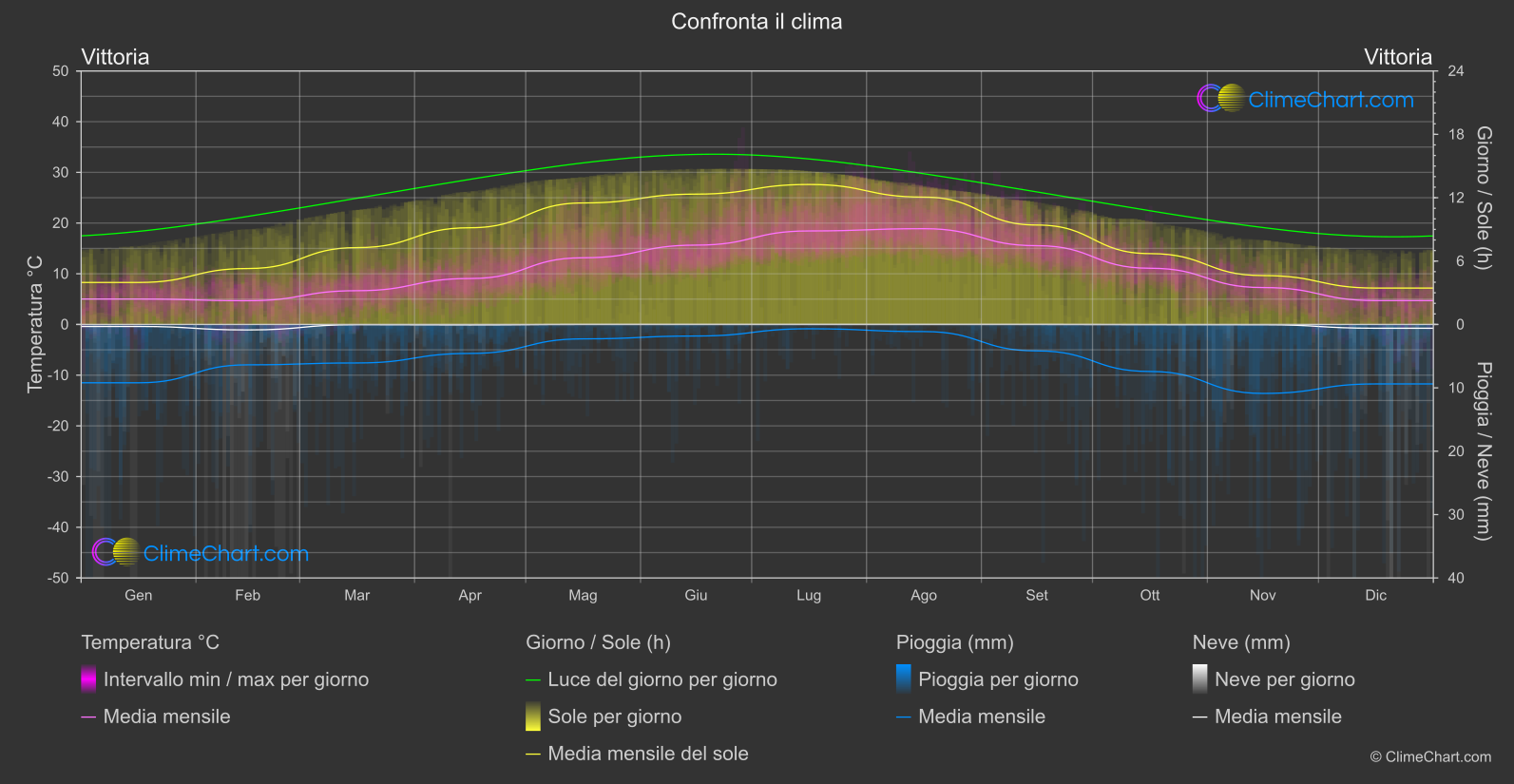 Panoramica dei Dati di Confronto Climatico per Vittoria, Canada vs Marrakech, Marocco