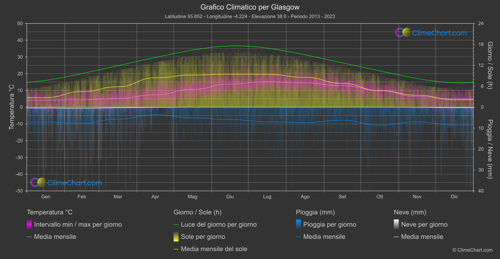 Glasgow ha un clima marittimo temperato con estati fresche e inverni miti.