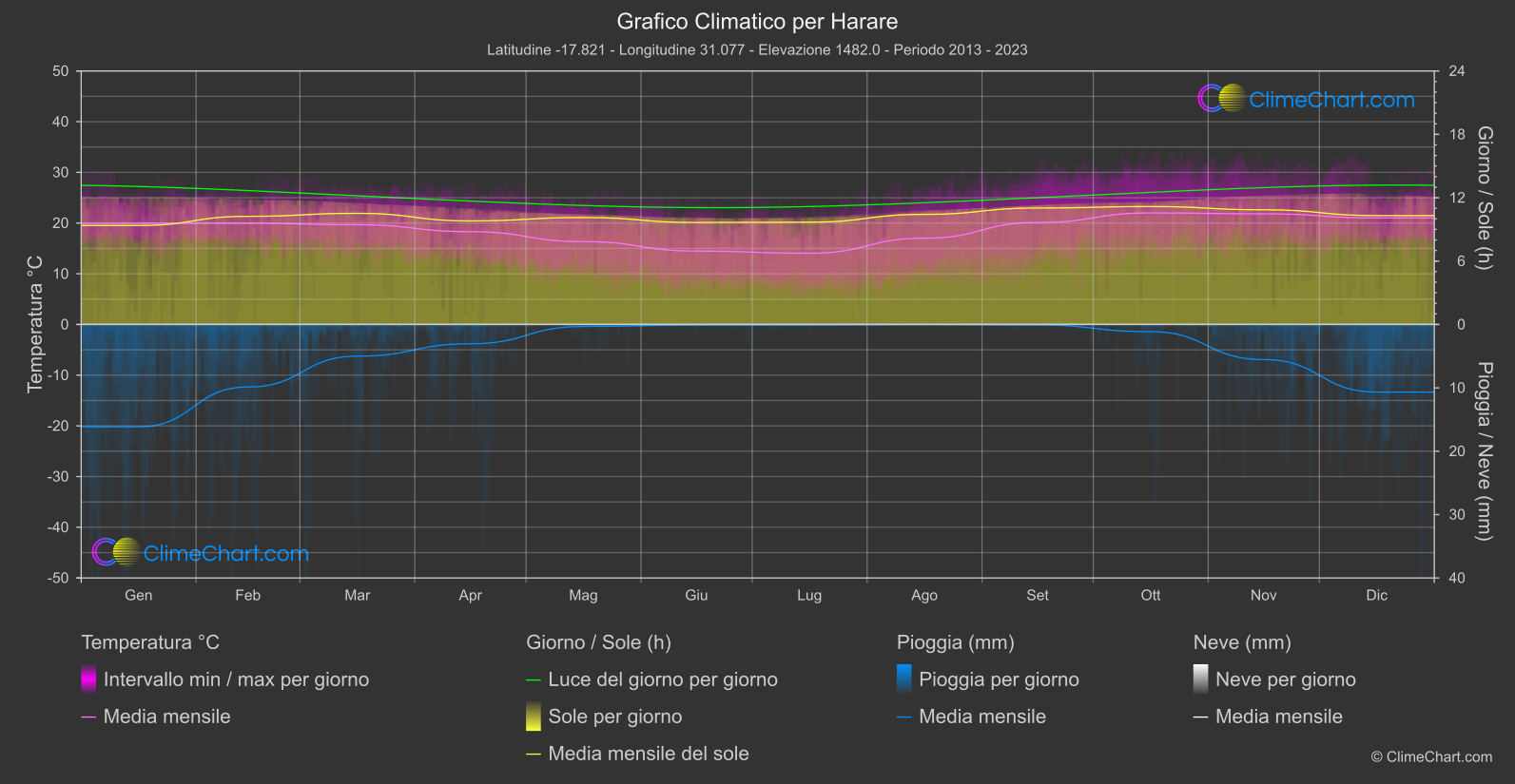 Harare, la capitale dello Zimbabwe, ha un clima subtropicale di montagna con estati calde e inverni miti.