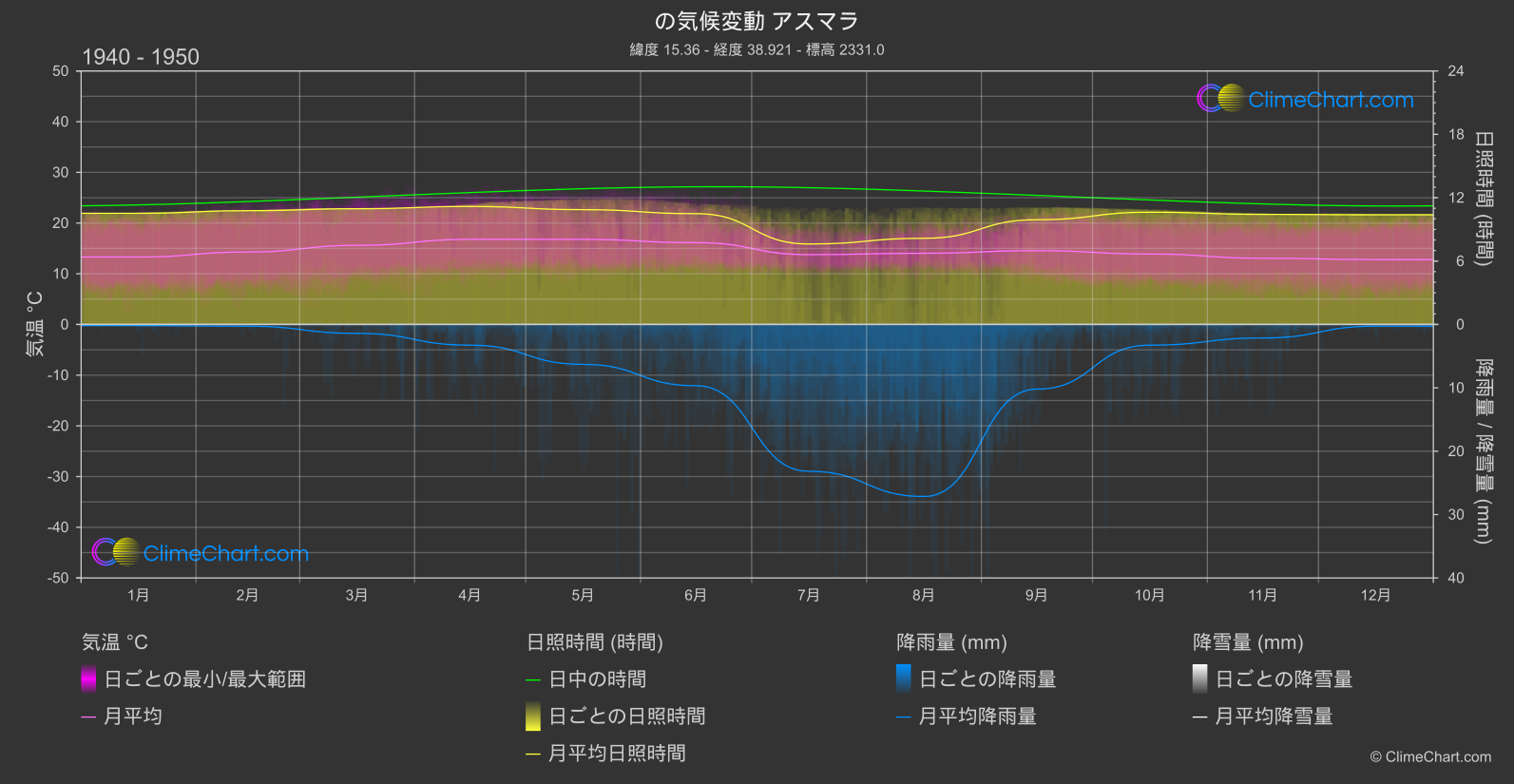 アスマラ, エリトリアの気候変動チャート