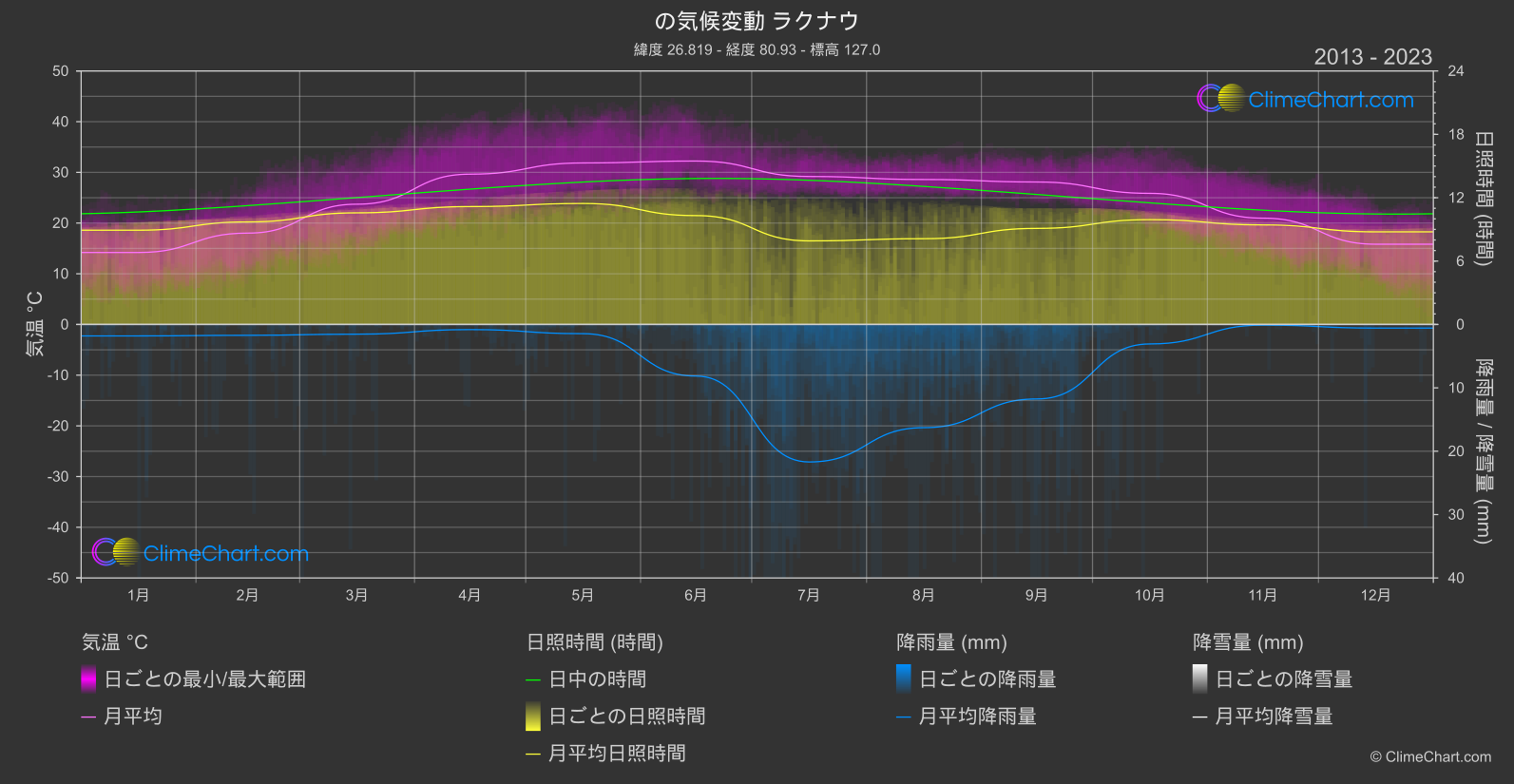 ラクナウ, インドの気候変動チャート