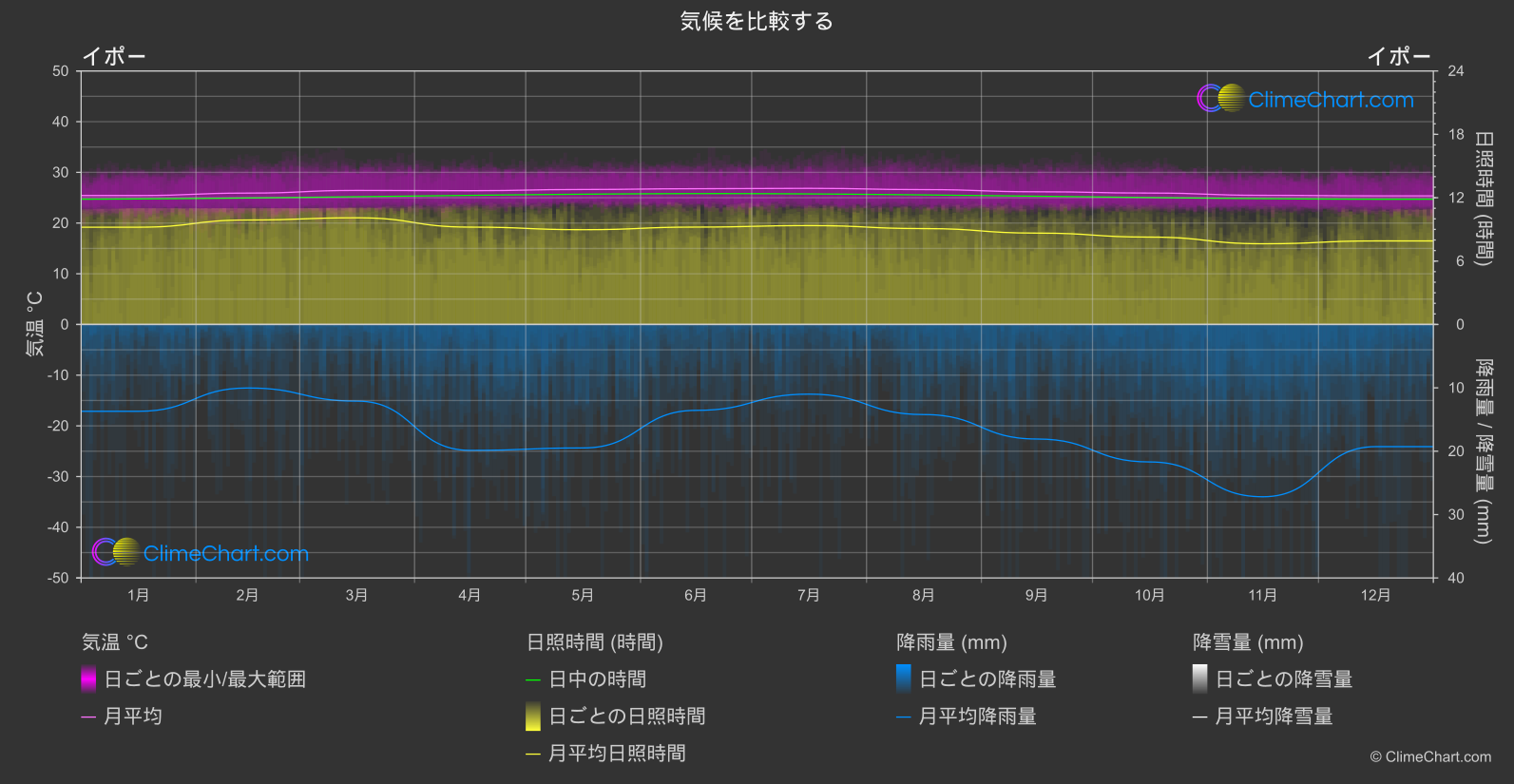 イポー, マレーシアとニューヨーク市, アメリカ合衆国の気候比較チャート