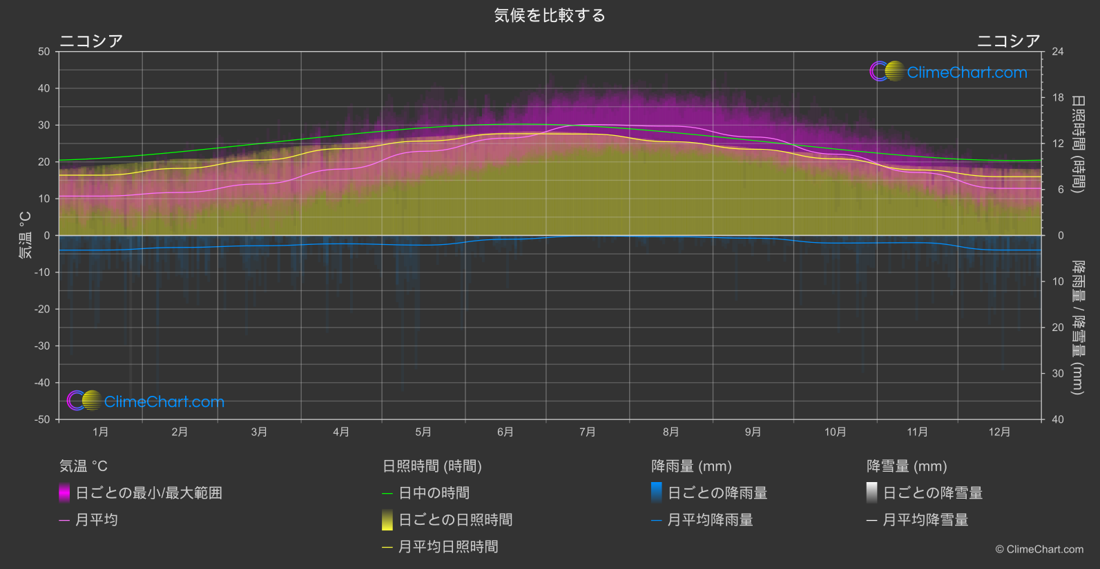 ニコシア, キプロスとシンガポール, シンガポールの気候比較チャート