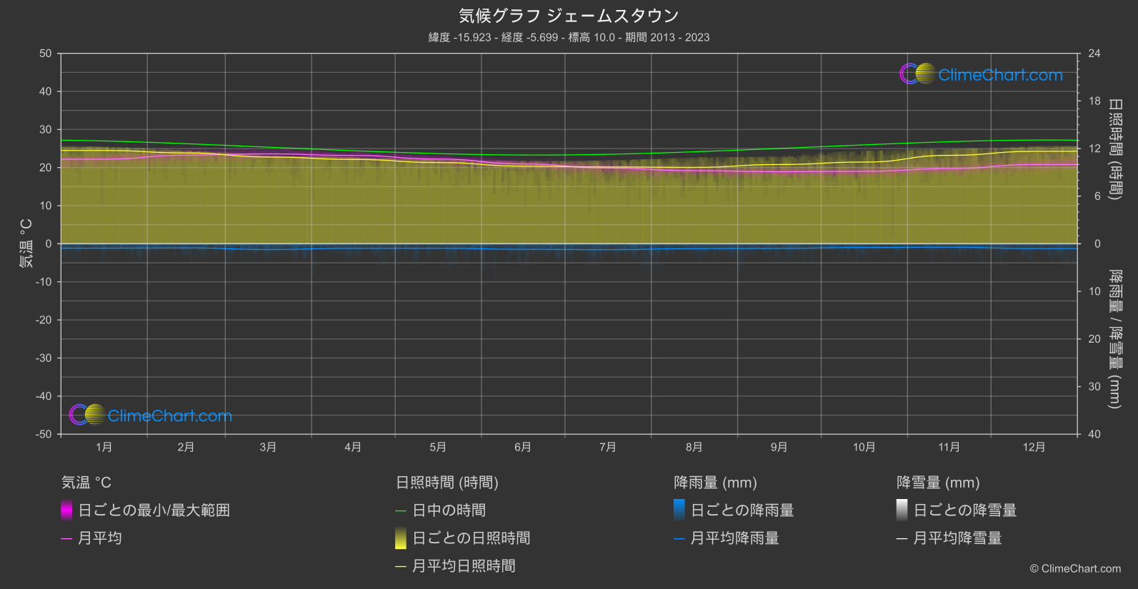 セントヘレナ、アセンション、トリスタン・ダ・クーニャ の詳細な気候情報: 地域の天気パターンとデータ