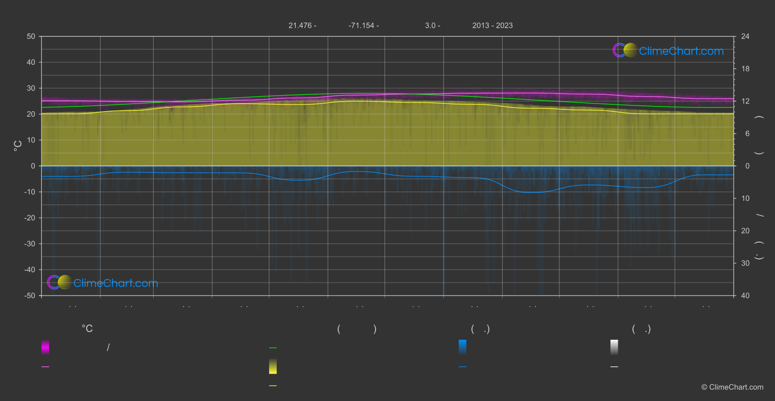 ภาพรวมข้อมูลสภาพภูมิอากาศสำหรับ ค็อกเบิร์น ทาวน์, หมู่เกาะเติกส์และหมู่เกาะเคคอส