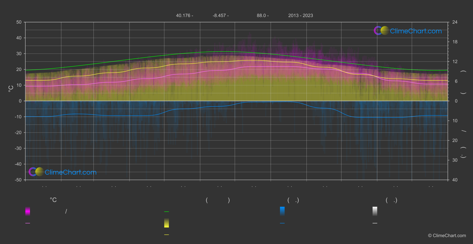 ภาพรวมข้อมูลสภาพภูมิอากาศสำหรับ โคอิมบรา, โปรตุเกส