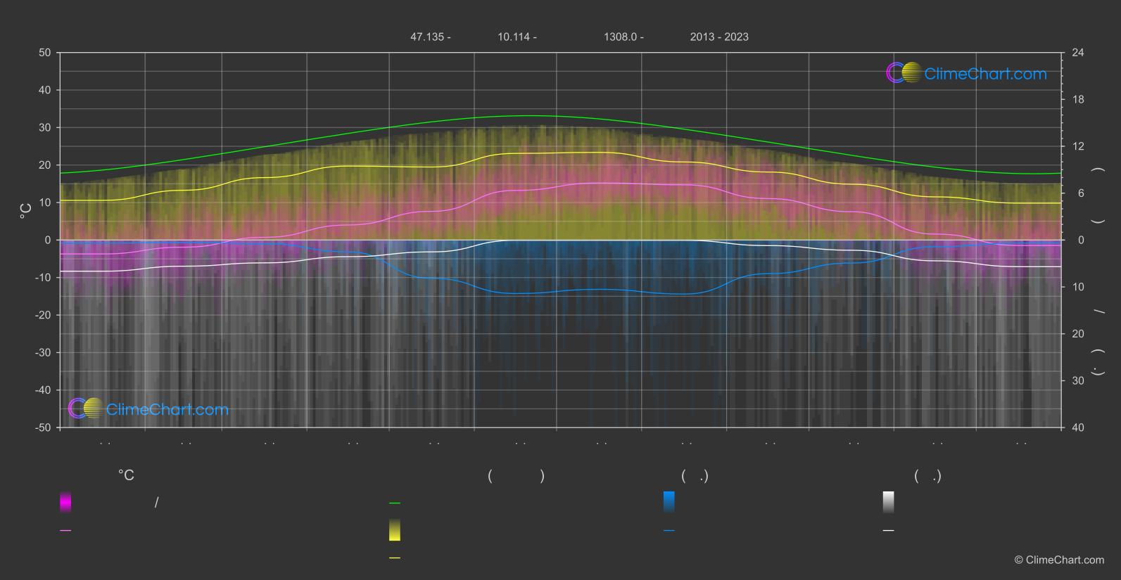 | เดือน | ⌀ อุณหภูมิ °C | ⌀ ฝน (มม.) | ⌀ หิมะ (มม.) | ⌀ แสงอาทิตย์ (ชั่วโมง) |