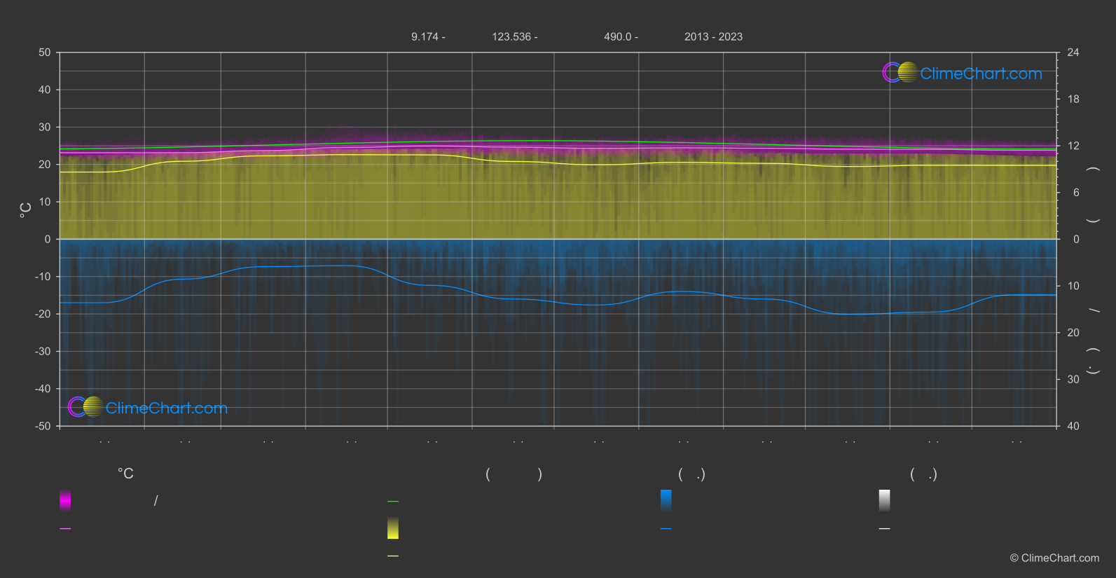 แผนภูมิภูมิอากาศที่ครอบคลุมของซีกีจอร์ ฟิลิปปินส์: ค่าเฉลี่ยรายเดือนและแนวโน้มสภาพอากาศ